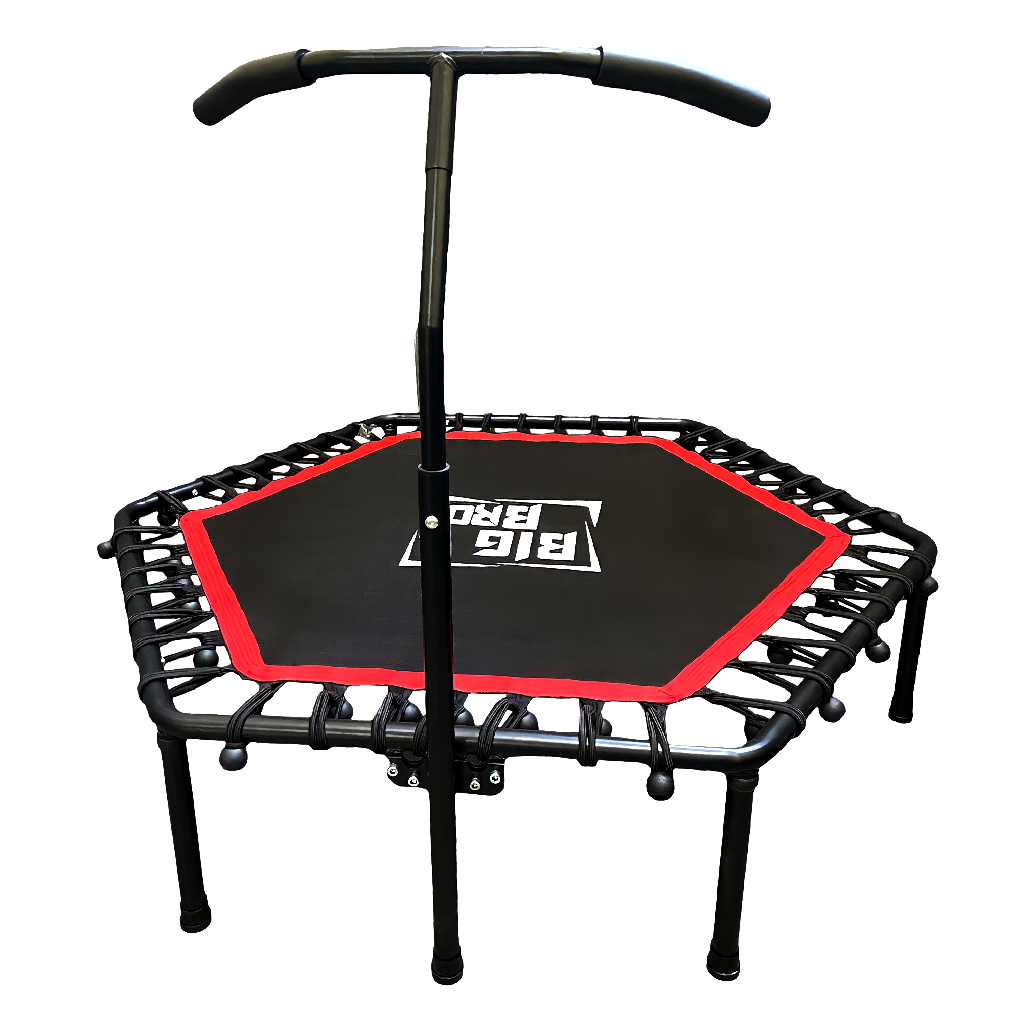 Батут для фитнеса очень популярен в спортивных залах, ведь тренировки с ним позволяют задействовать огромный комплекс мышц и за короткий срок позволяют привести себя в прекрасную спортивную форму. Данная модель батута разработана специально для занятий Джампингом. Полотно батута изготовлено из высококачественного полипропилена, устойчив к износу и разрывам, с шестигранной поверхностью, обеспечивает стабильный и высокий отскок. Шесть стальных ножек выдерживают вес пользователя до 150 кг. Мощная стальная шестиугольная рама выдерживает продолжительные и интенсивные нагрузки. Высота ручки может быть отрегулирована до 3-х различных уровней, поэтому легко подстраивается под любой рост. Прыжки на таком батуте практически бесшумны в отличие от прыжков на пружинных батутах.Снаряд предназначен как для групповых занятий, так и для тренировок дома.