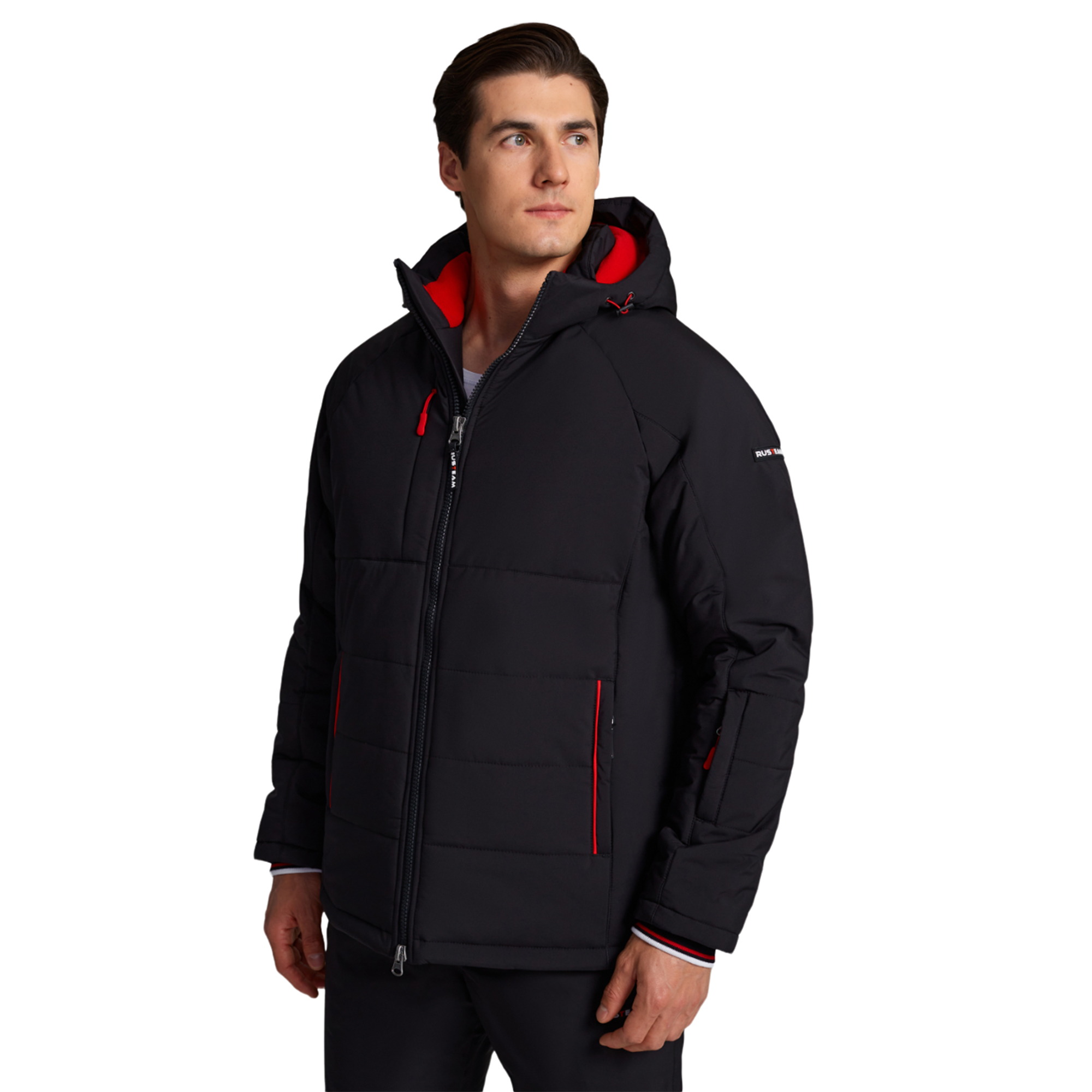 Утеплённый спортивный костюм RUSTEAM станет отличным выбором для занятий зимними видами спорта за счёт современных материалов внешнего слоя и утеплителя, позволяя длительное время заниматься зимним катанием. Внешний слой костюма изготовлен из плащевой ткани, обладающего высокими влаго- и ветрозащитными характеристиками, что в сочетании с утеплителем на основе полиэфирных волокон, которые эффективно удерживают теплый воздух в микропорах, позволяет носить изделие при самых разных погодных условиях. В качестве дополнительного барьера от попадания холодного воздуха куртка оборудована флисовой подкладкой с внутренней стороны. Регулируемый капюшон позволяет защитить голову в случае дождя или снегопада. Рукава покроя «реглан» обеспечивают плотную посадку куртки на теле, не сковывая движений во время занятий спортом. Множество карманов на молнии, в том числе карман на рукаве, позволяет хранить большое количество мелких вещей и иметь всё необходимое всегда под рукой. Низ куртки регулируется, что в сочетании с внутренними трикотажными манжетами не даст снегу и холодному воздуху попасть под одежду. Брюки костюма обладают прямым силуэтом и не сковывают движений ног. Современные износостойкие материалы позволяют с комфортом наслаждаться длительными занятиями зимними видами спорта, не беспокоясь о потере формы и цвета, что также позволяет костюму выдерживать машинную стирку. Стильный чёрный дизайн костюма будет контрастировать на фоне зимнего пейзажа, сочетаясь с элементами спортивной экипировки.Характеристики:
