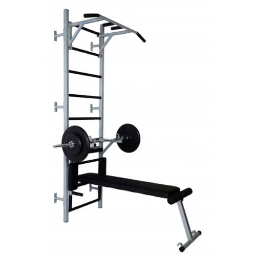 - Размер скамьи в сложенном состоянии позволяет хранить ее между шведской стенкой и стеной