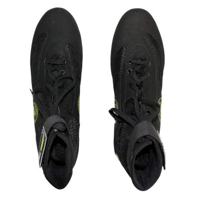 - Надежная фиксация: Шнуровка и застежка на липучке надежно фиксируют ногу, предотвращая скольжение и обеспечивая безопасность во время тренировок.