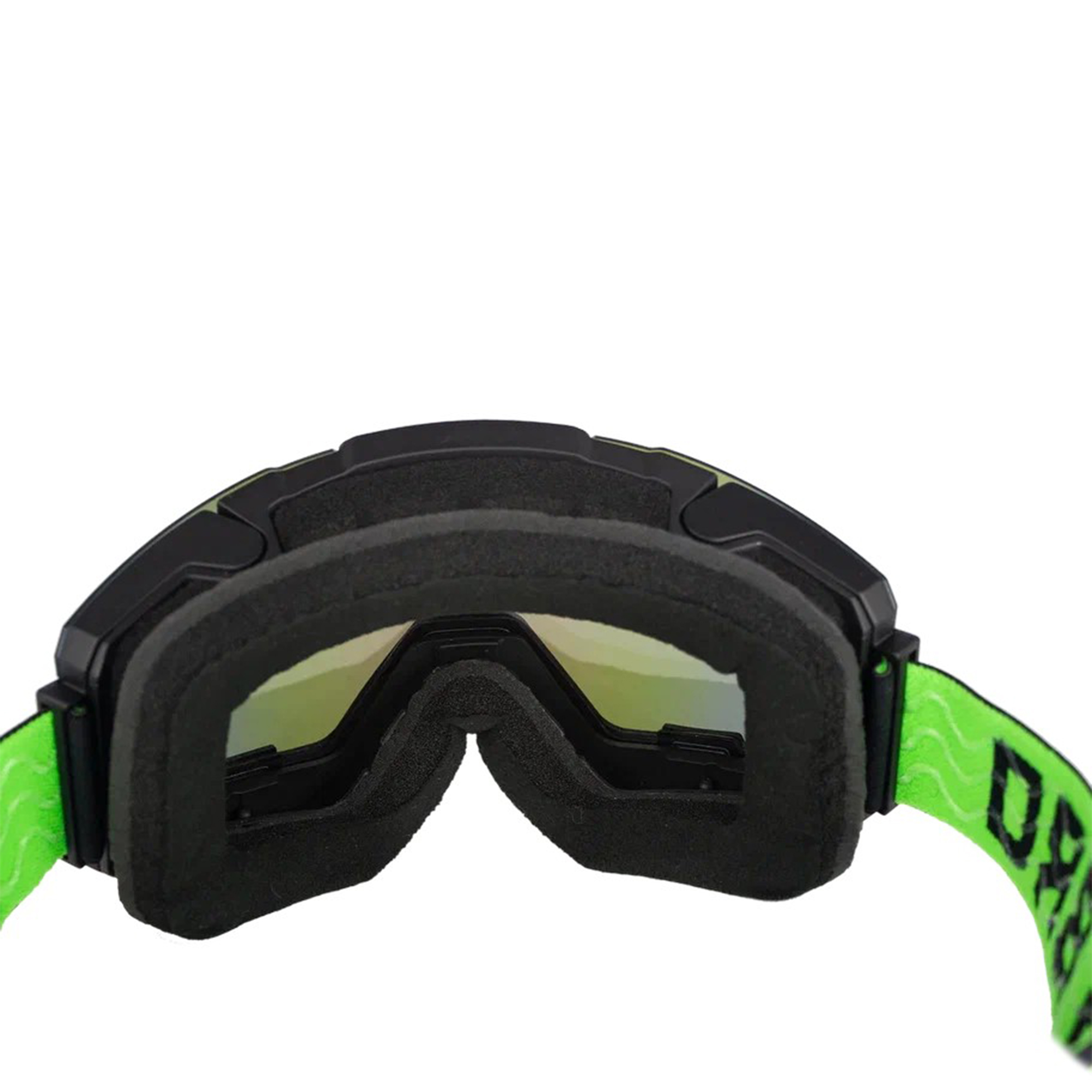 Очки Big Bro FJ043 воплощают в себе яркий дизайн, удобство и использование современных технологий и станут решением для экстремального катания на сноуборде и лыжах. Модель исполнена в черном и ярко-зелёном цветах. Очки оборудованы цилиндрическим типом линз и обработаны по технологии Full REVO, что даёт высокое качество изображения с широким углом обзора защищая глаза от бликов и попадания ультрафиолетового излучения. Модель обладает магнитным креплением состоящий из восьми магнитов, надёжно удерживающих линзу при высоких нагрузках и при необходимости возможна быстрая смена линзы даже в перчатках. Специальное противозапотевающие покрытие препятствует образовыванию конденсата, а для полного исключения запотевания очки оборудованы микроканальной вентиляцией состоящий из 16-каналов. Выполненная из ударопрочного пластика оправы защитит очки от механических повреждений, а дополнительная влагоотводящая накладка из гипоаллергенных материалов позволит носить очки с комфортом. Удобная фиксация на голове обеспечивается за счёт широкого регулируемого стрепа на основе противоскользящих материалов с силиконовым слоем на обратной стороне, что создает комфортный обхват без лишнего дискомфорта для носителя.Очки идут в комплекте с двумя сменными линзами с жёлто-зелёным фильтром. Синяя основная линза обладает покрытием Full REVO для защиты глаз от УФ-лучей, отлично подходящая для катания в солнечную погоду. Дополнительная двойная жёлтая линза подойдёт для катания в туманную погоду благодаря противотуманному покрытию, препятствуя образованию конденсата. Идущий в комплекте эргономичный футляр обладает жёсткой основой со стороны линзы для защиты от повреждений, что позволяет снизить объем футляра для экономии места при транспортировке.